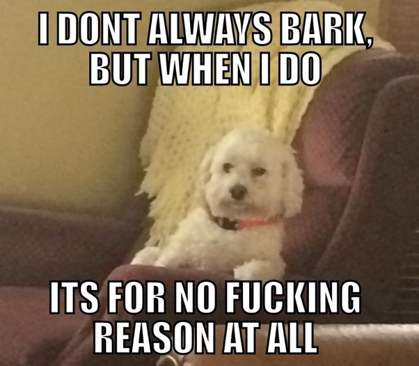 Do dogs ever stop barking meme. That means don t give him any attention at all while he s barking. Find a dog walker who can come at mid day to exercise your dog and break the monotony of being alone all day. Because dogs don t understand your verbal language. The only thing worse are little kids interacting with something that we can t see.